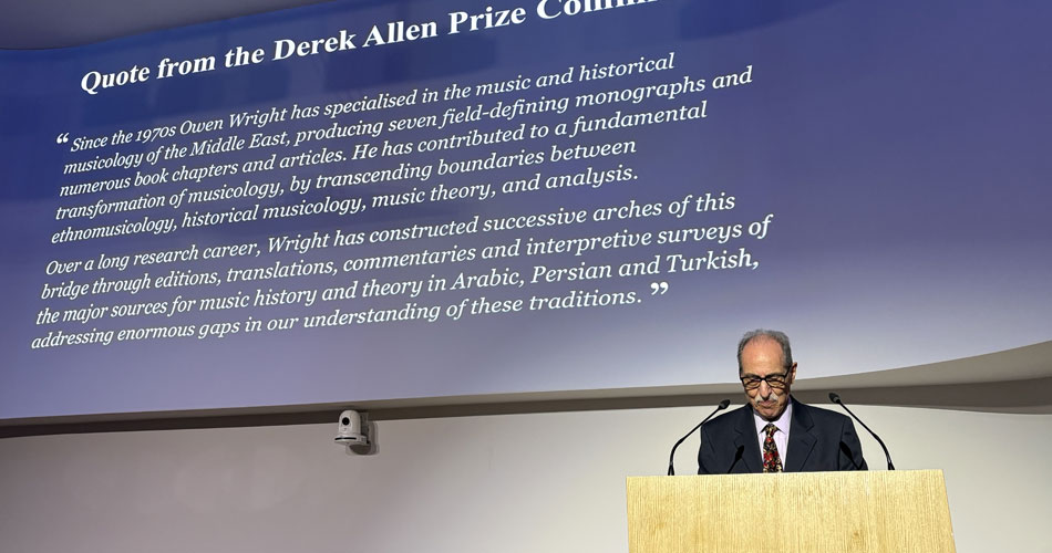Maqam Beyond Nation is proud to share that Professor Owen Wright, esteemed member of our Advisory Board and Emeritus Professor of Musicology of the Middle East at SOAS University of London, has been awarded the 2025 Derek Allen Prize by the British Academy. This prestigious award, presented annually in rotation across the fields of musicology, numismatics, and Celtic studies, recognizes outstanding scholarly contributions. This year, it honours Professor Wright for his distinction in musicology.