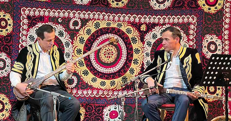 This was a stunning concert, with master musicians from Tajikistan, Sirojiddin Juraev on dotar, tanbur and sato, and Khurshed Ibrohimzoda on vocals and tanbur, performing excerpts from the Shashmaqom repertoire, plus a selection of instrumental pieces and new compositions. They were joined by dancer Madina Sabirova from the Tajik State Ensemble Zebo.